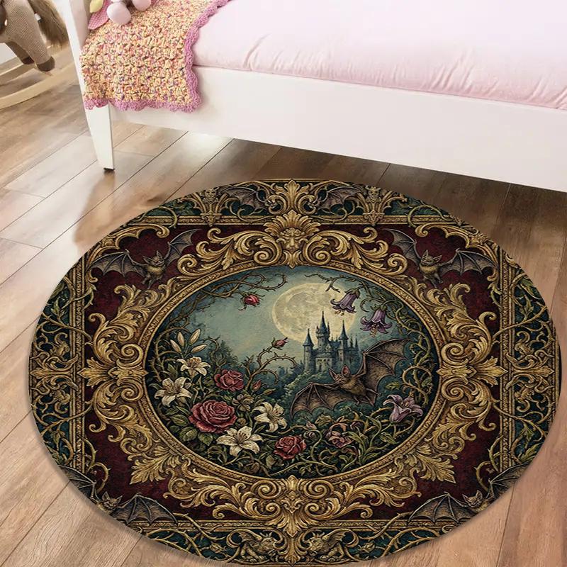 Bat Retro Round Area Rug,Carpet Rug for Living Room Bedroom Sofa Playroom Decor,Non-slip Floor Mat99 — купить товар онлайн с бесплатной доставкой по всему миру!