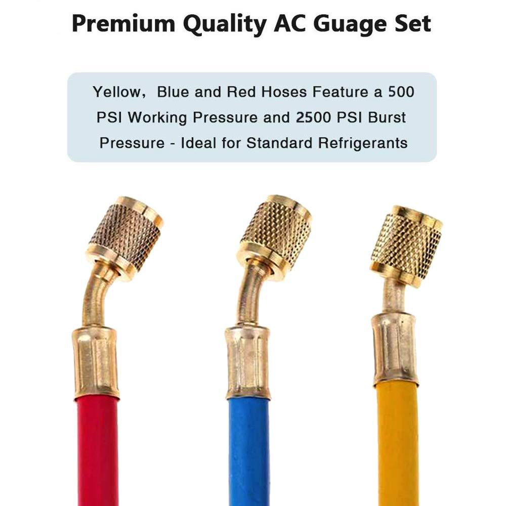 R134a Air Conditioning Pressure Gauge with Hose and Hook 3 Way AC Diagnostic Manifold Gauge Set Freon For R12 R32 R404A R134a