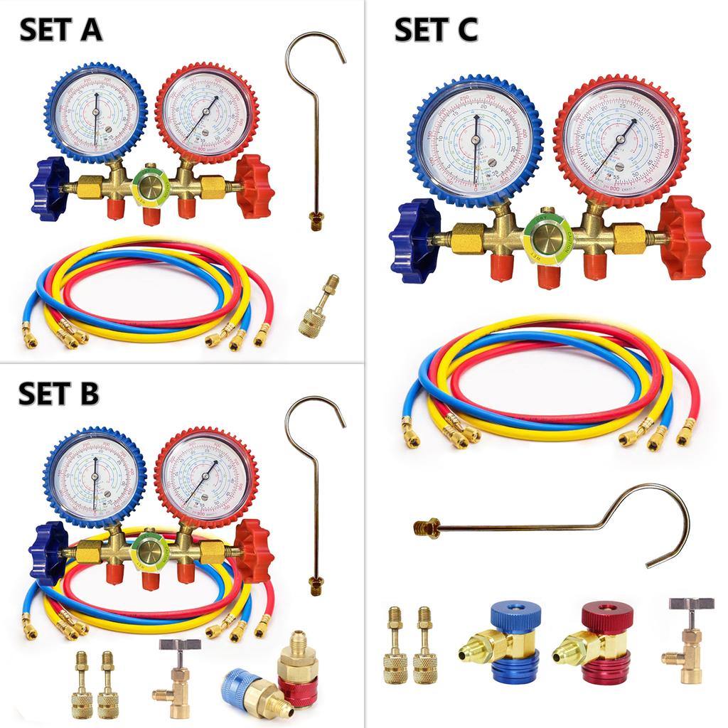 Манометр для кондиционирования воздуха R134a со шлангом и крюком, 3-ходовой диагностический манометр для коллектора кондиционера, комплект фреона для R12 R22 R404A R134a