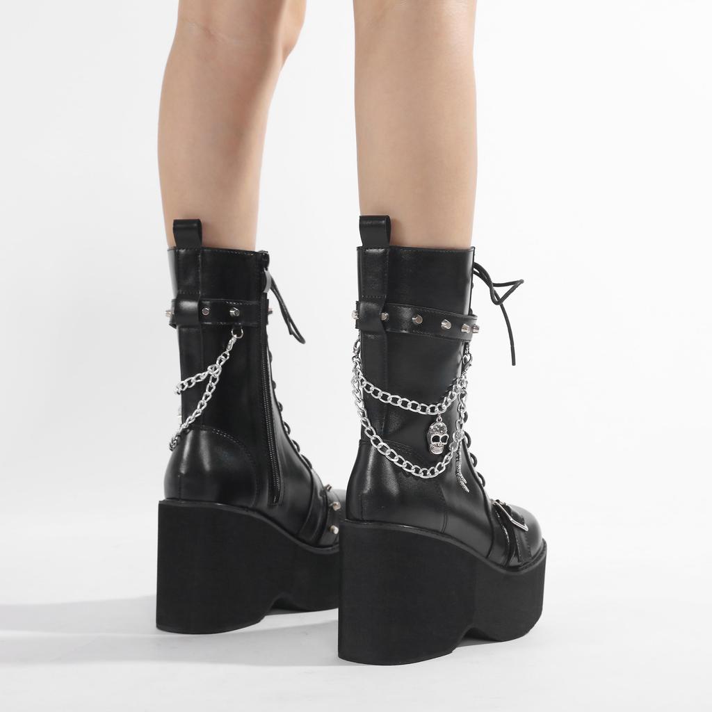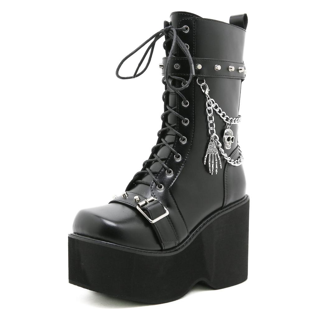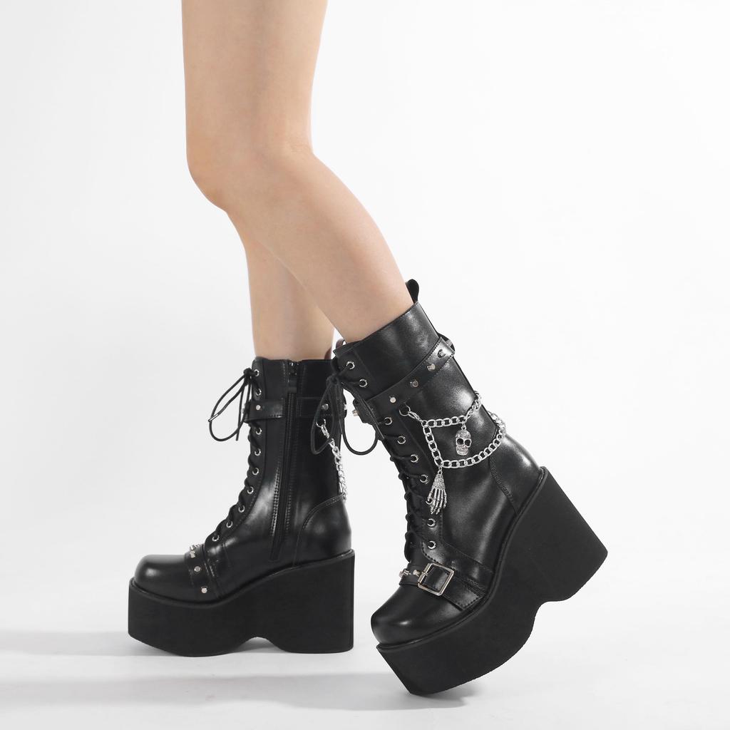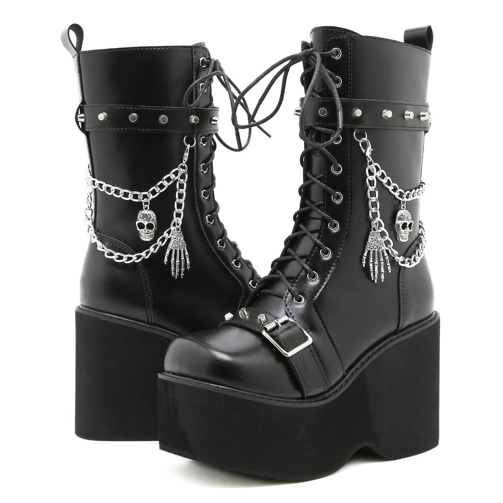 Gdgydh Большой размер 43 Весенне-осенние женские ботинки на платформе с цепями, ботинки в стиле панк, череп, гот, INS, женская обувь для косплея, армейские ботинки