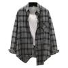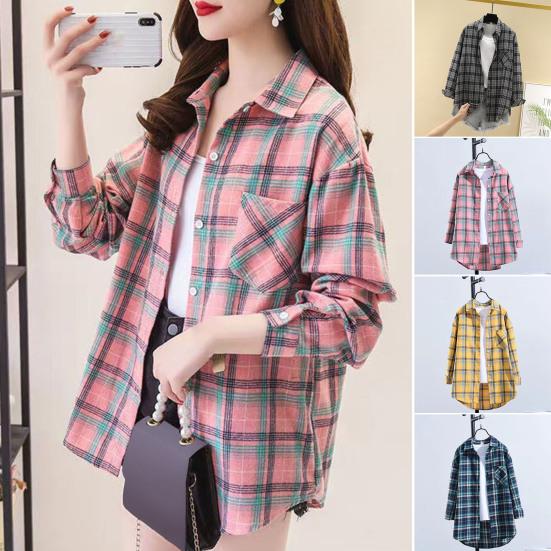 Отложной воротник, длинный рукав, однобортная рубашка с накладными карманами, свободная рубашка, классическая повседневная рубашка с клетчатым принтом, блузка, женская одежда