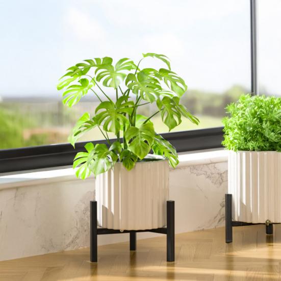 Подставка для цветочного горшка Регулируемая металлическая подставка для растений Уличная комнатная Сверхпрочная Треугольная конструкция Нескользящие ножки Держатель для горшечного растения