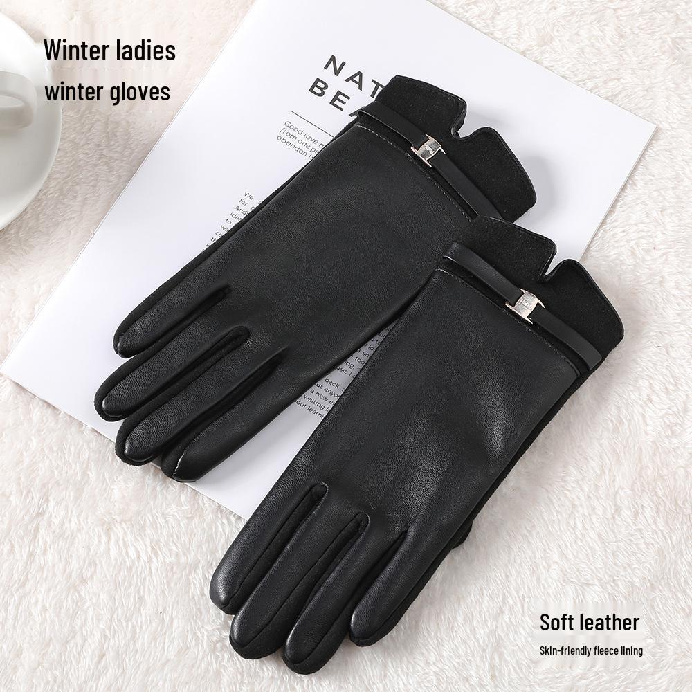 Женские Милые Ветрозащитные Перчатки из Искусственной Кожи: Зимняя езда на велосипеде, вождение и сенсорный экран, с толстой бархатной подкладкой