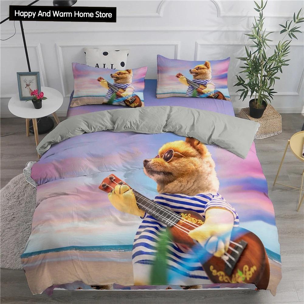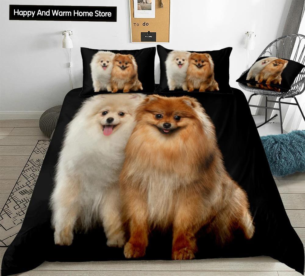 Померанский шпиц, пододеяльник King Queen, комплект постельного белья для щенков, подростков, взрослых, животных, красочное небо, 2/3 шт., полиэстер, пододеяльник