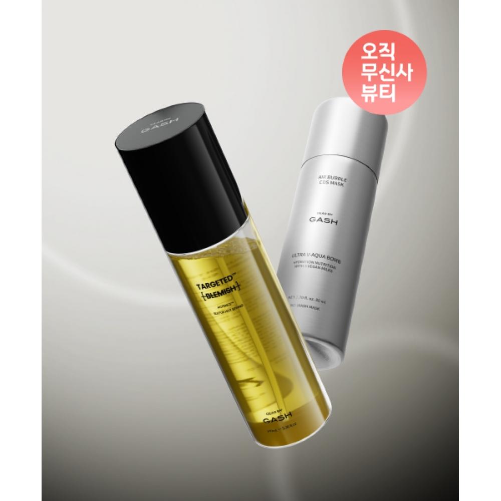 GEAR BY GASH [Dry Skin Care Set] Air Bubble CDS Mask Pack Ultra V Aqua Balm (150 uses) + Targeted Blemish Toner (100ml) is a skincare set suitable for all skin types. This set includes an Air Bubble CDS Mask Pack enriched with 99.88% high-purity 3-stage hyaluronic acid and vegan milk components, alongside a toner designed to effectively target blemishes. Utilizing micro air bubble technology, it delivers moisture instantly to the skin and promotes a smooth texture.