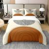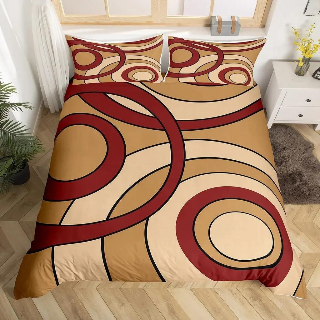 Комплект постельного белья с круглым пододеяльником и геометрическим рисунком, абстрактными завитками, полосами и линиями, а также ретро-лоскутным узором.