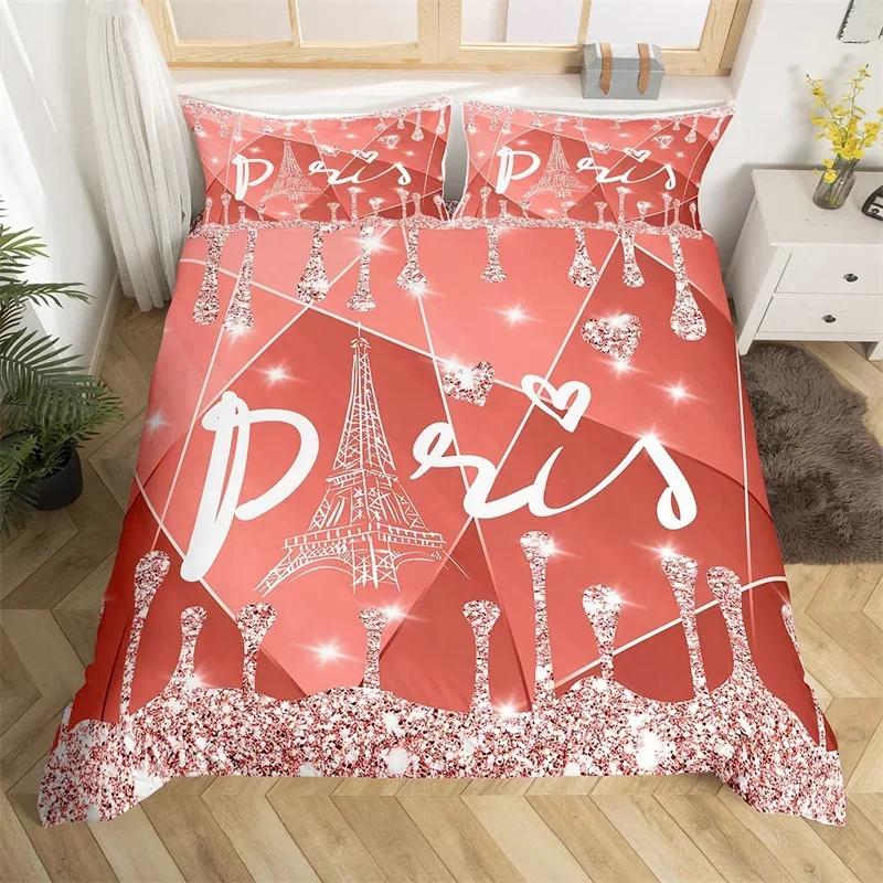 Комплект постельного белья с Эйфелевой башней Односпальный Полуторный King Для Детей Девочки Подростка Комнаты Парижский Комплект Постельного Белья Микрофибра Градиентный Алмазный Пододеяльник