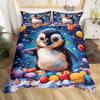 Cartoon Penguin Duvet Cover Polar Animal Watermelon Bedding Set for Boys Girls Room DecorArctic Wildlife Fruit Comforter Cover