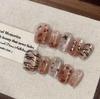 Чистое Желание Французские Кошачий Глаз Длинные Накладные Ногти – Новогодний Арт, Съемные, Полуручной Работы