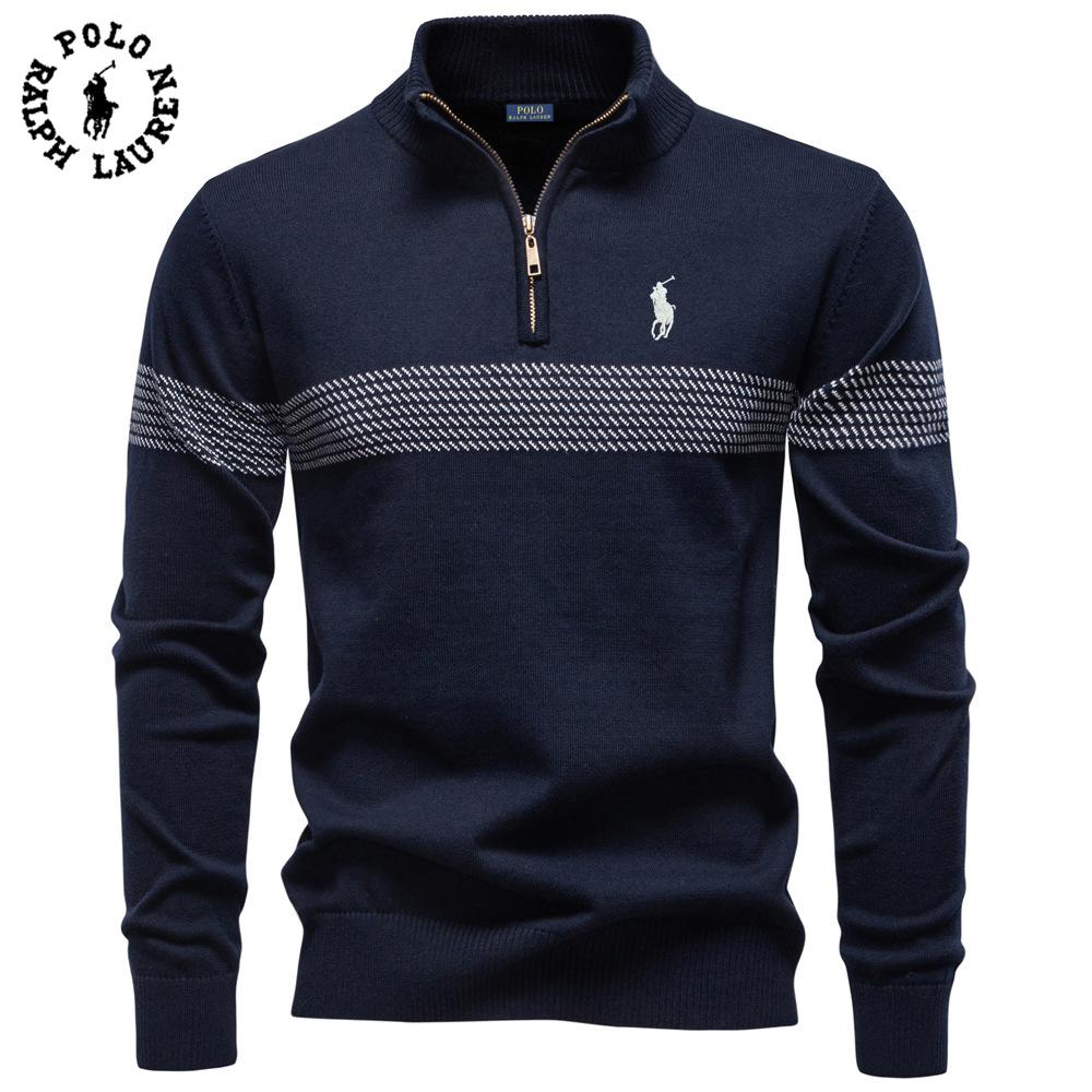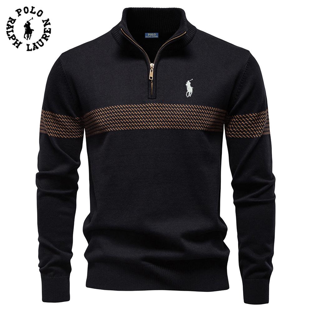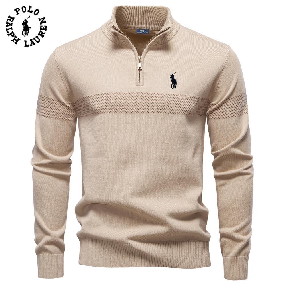 Polo Ralph Lauren 2025 Осень-Зима Вышивка Новый Мужской и Женский Свитер из Чистого Хлопка, Высококачественный Повседневный Топ с Полумолнией для Пары