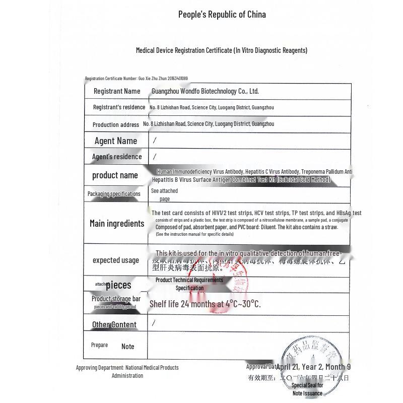 Wanfu Four-in-One Blood Test Kit: HIV, AIDS, Syphilis, Hepatitis B & C Multi-Test Strips