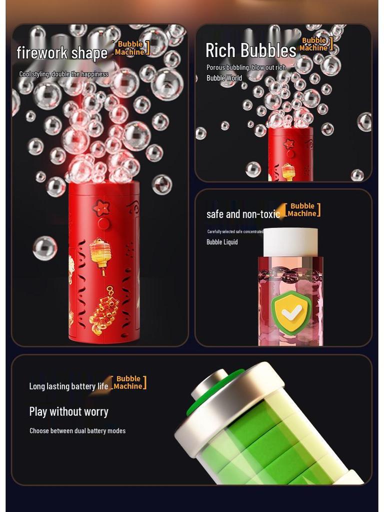 Cross-border Fireworks Bubble Machine: Realistic Sounds, Lights, Automatic Bubble Blower for Kids' Festive Fun