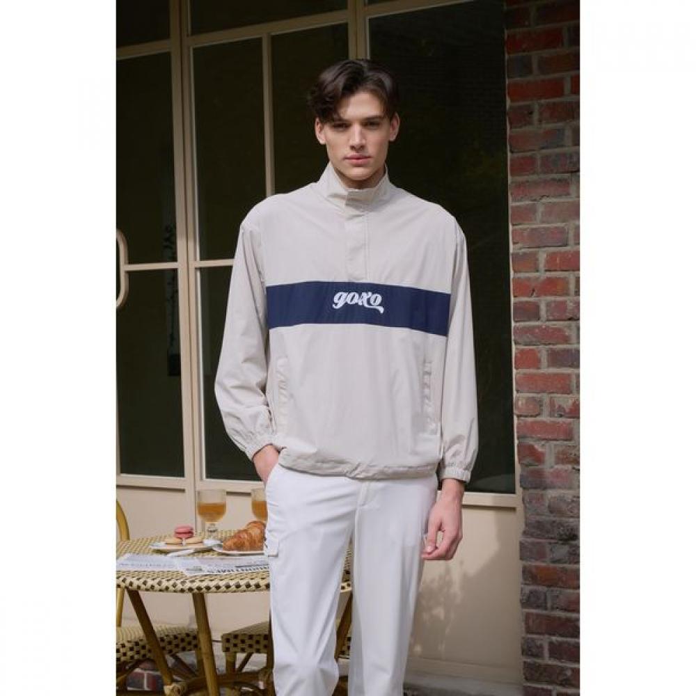 Анорак Goexoo Beige Hook Slice — это анорак, изготовленный из легкой, эластичной тканой ткани, обеспечивающей превосходную эластичность.. Он имеет цветовые блоки на передней части и печать с надписями на локтях, что завершает повседневный дизайн.. Подходит для гольфа и стилизован как мужская футболка с длинным рукавом.