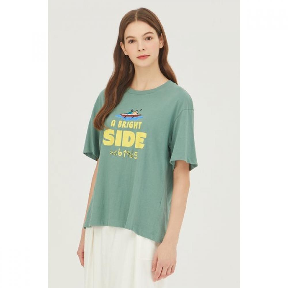 The Benetton Macaron Embroidered T-shirt BATS03341 is a women's casual round-neck T-shirt,