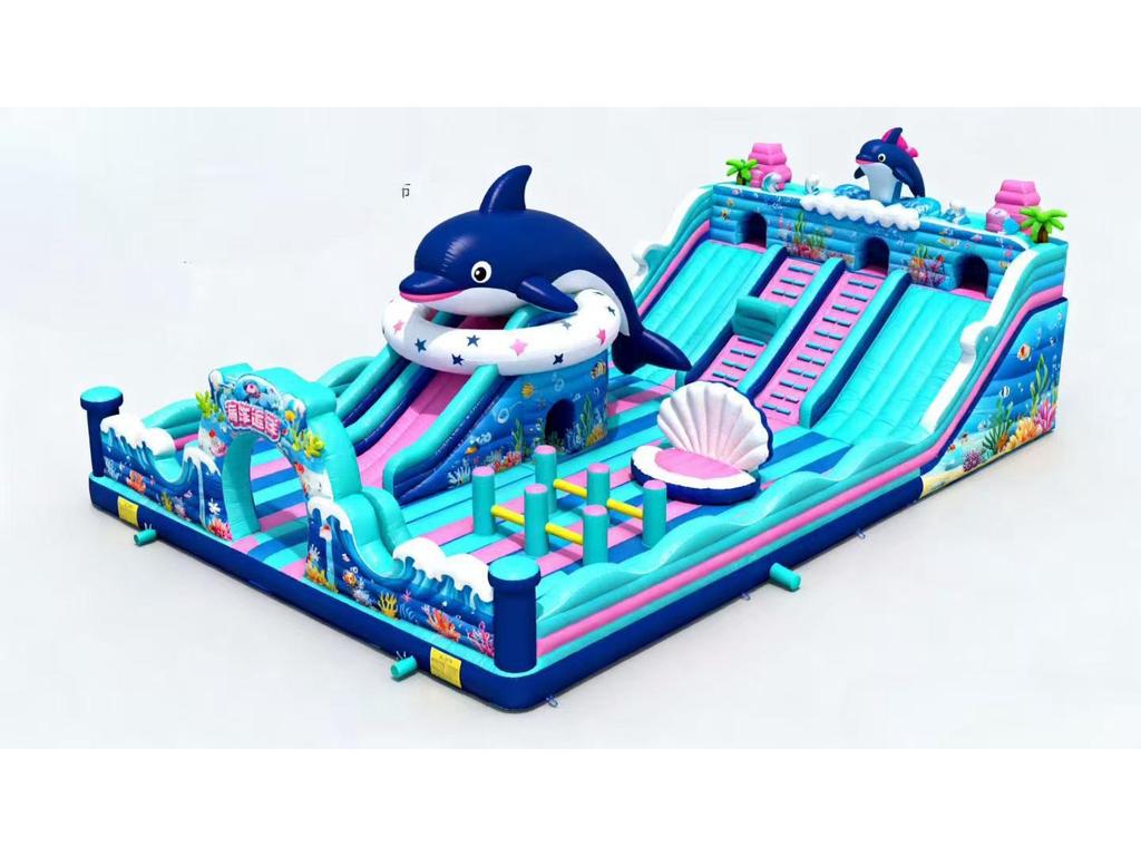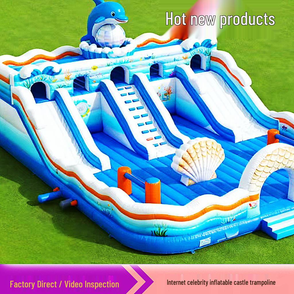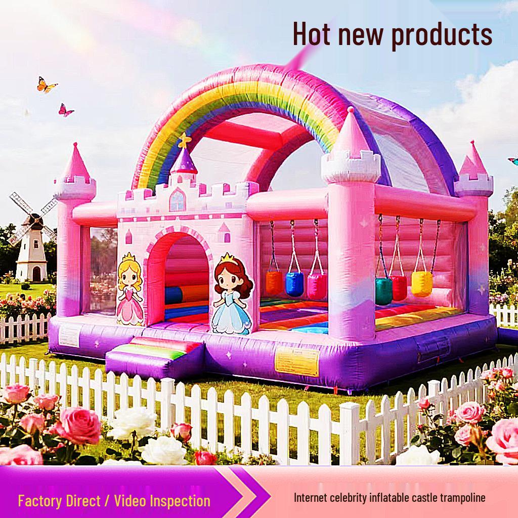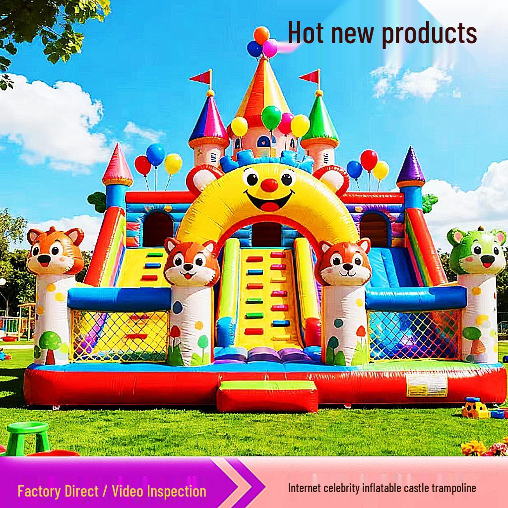 Большой надувной замок: Детский игровой домик-крепость со скалодромом, горкой и батутом