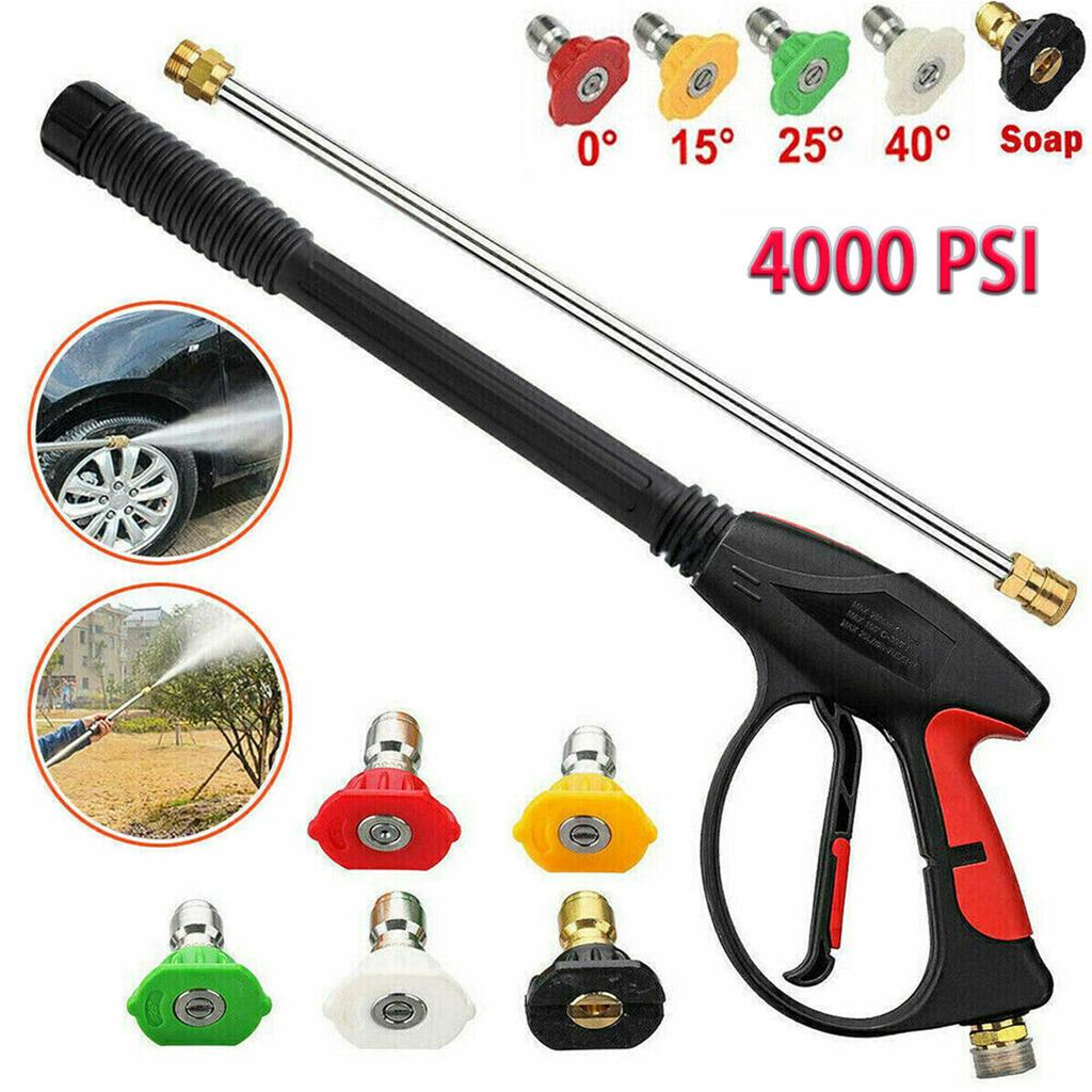 7pcs High Pressure Washer Gun 4000psi M22 Fitting Power Spray Gun With Extension Replacement Wand Lance 5 Nozzles Tips For Home Car Washing