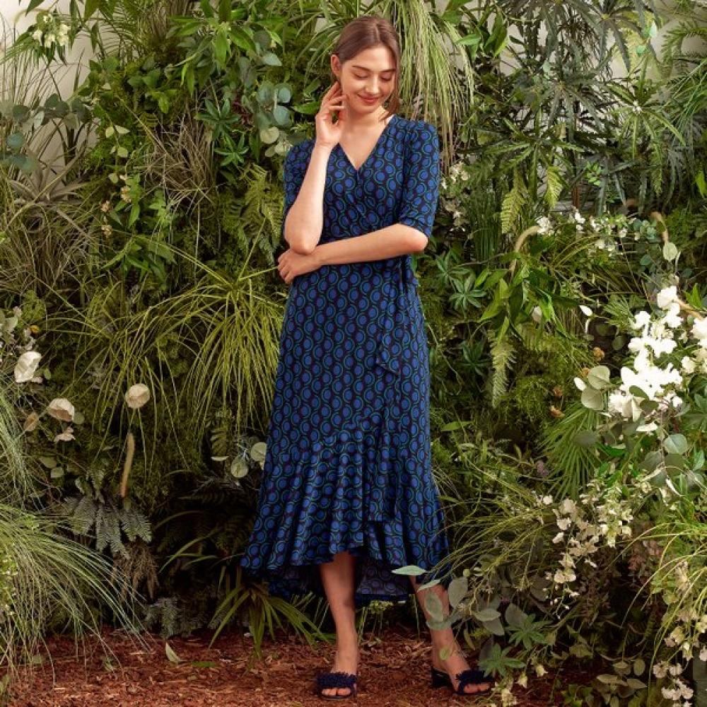 The Lipbbam 바이립밤 크레오라 비비안느 3/4 슬리브 프릴 랩원피스 LDM42OC01 features a wrap style design that provides an elegant silhouette. With frill details and 3/4 sleeves, it showcases an excellent style in the Vivienne design of the Creora line.