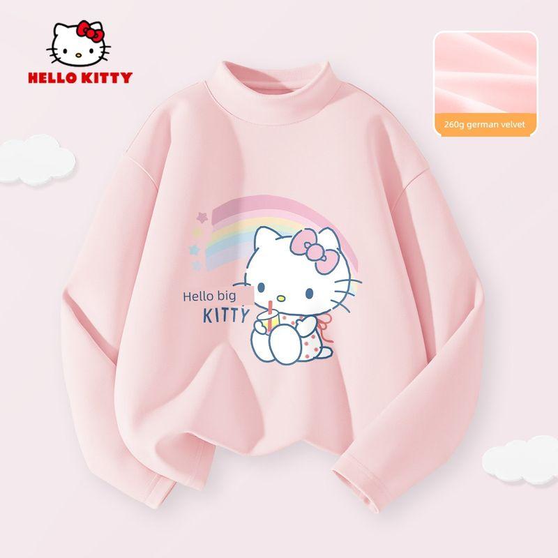 Hello Kitty Girls' Fleece-Lined Base Layer Shirt, Children's Long-Sleeve T-Shirt, Thermal Top in Pink, Stylish Inner Wear