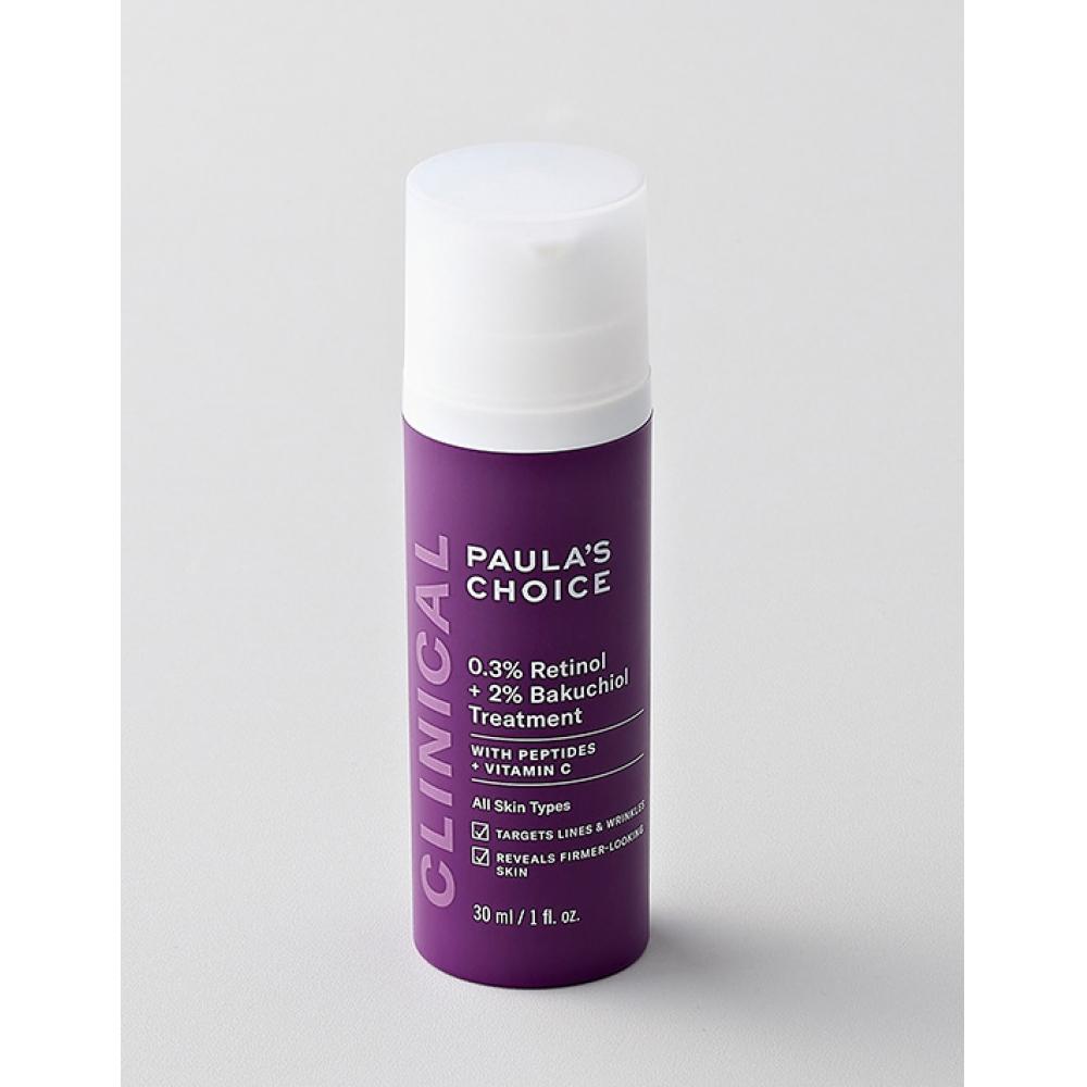 Paula's Choice Clinical 0.3% Retinol + 2% Bakuchiol Treatment 30 мл — это инновационное антивозрастное средство, сочетающее 0,3% ретинола и 2% бакучиола. Этот продукт помогает улучшить текстуру кожи и повысить ее эластичность, а ретинол способствует регенерации клеток кожи и эффективен для уменьшения морщин и выравнивания тона кожи.. Бакучиол, ингредиент растительного происхождения, минимизирует раздражение кожи, обеспечивая при этом превосходное противовоспалительное действие, что делает его безопасным для использования на чувствительной коже.