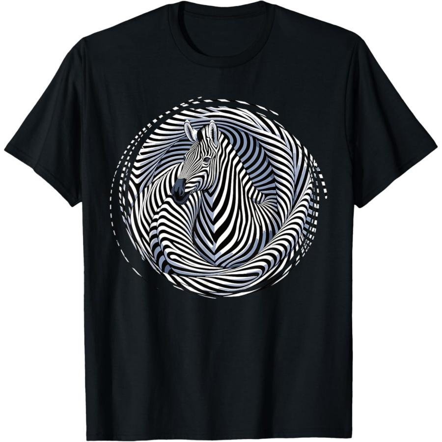 Футболка с изображением зебры, оптической иллюзией, гипнотическим искусством и символикой животных.
