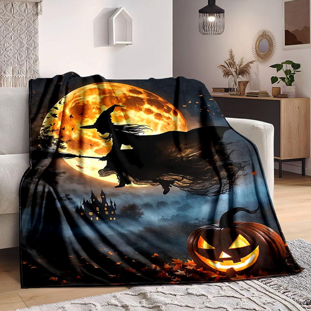 1pc Halloween Witch Print Blanket Lightweight Flannel Throw Blanket For Sofa, Bed, Living Room, Office, Outdoor Travel, Camping — купить товар онлайн с бесплатной доставкой по всему миру!