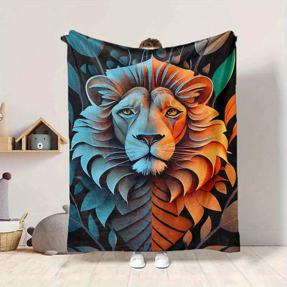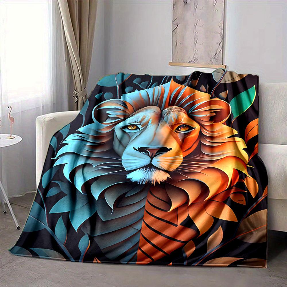 1pc Lion Tiger Print Blanket Lightweight Flannel Throw Blanket For Sofa, Bed, Living Room, Office, Outdoor Travel, Camping