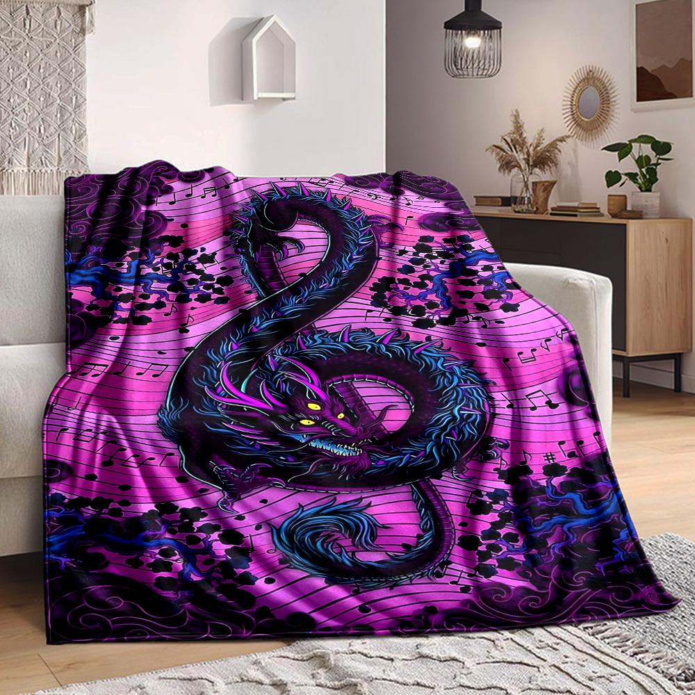 1pc Music Dragon Blanket, Lightweight Flannel Throw Blanket for Sofa, Bed, Travel, Camping, Living Room, Office, Couch, Chair, and Bed