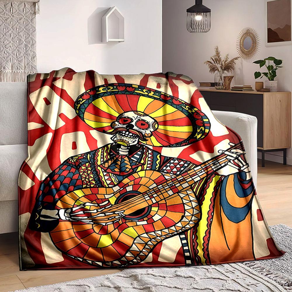 1pc Day of the Dead Guitarist Blanket, Lightweight Flannel Throw Blanket for Sofa, Bed, Travel, Camping, Living Room, Office, Couch, Chair, and Bed