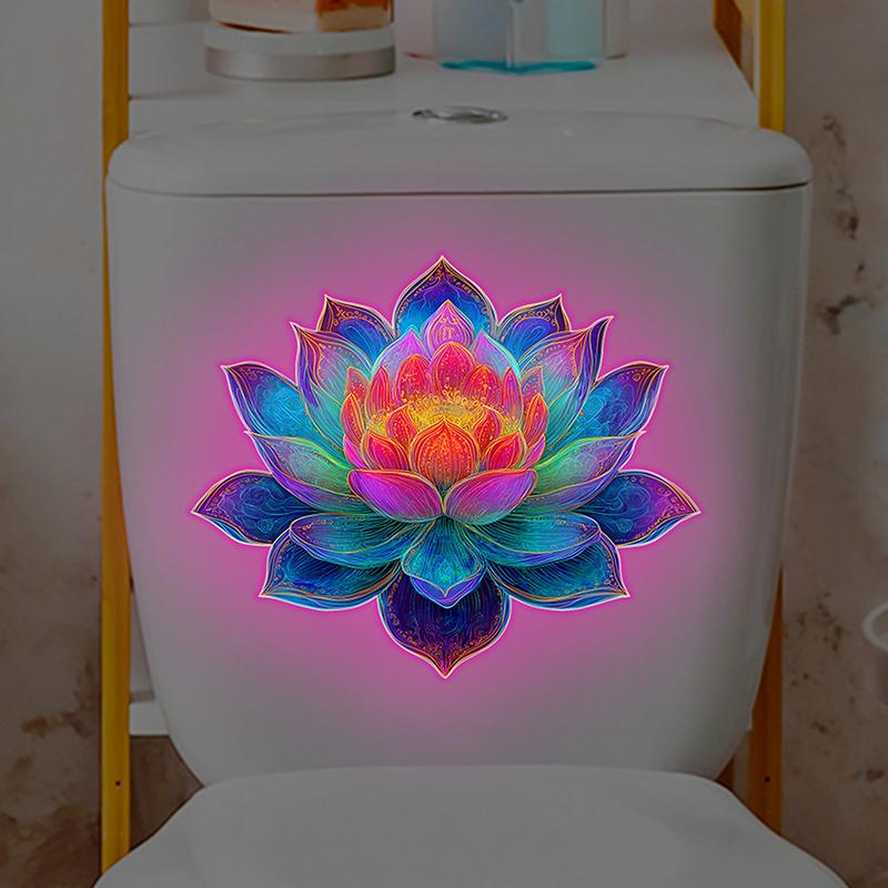 Самоклеящаяся наклейка на унитаз в виде цветка, светящаяся в темноте, лотос, ванная комната, светящаяся наклейка на унитаз, люминесцентная наклейка на стену, декор для дома