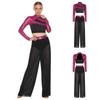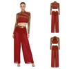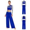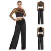 Двухкомпонентный сценический танцевальный наряд для женщин S-XXL: Топ с пайетками и воротником-стойкой и струящиеся брюки с разрезами по бокам, идеально подходят для соревнований