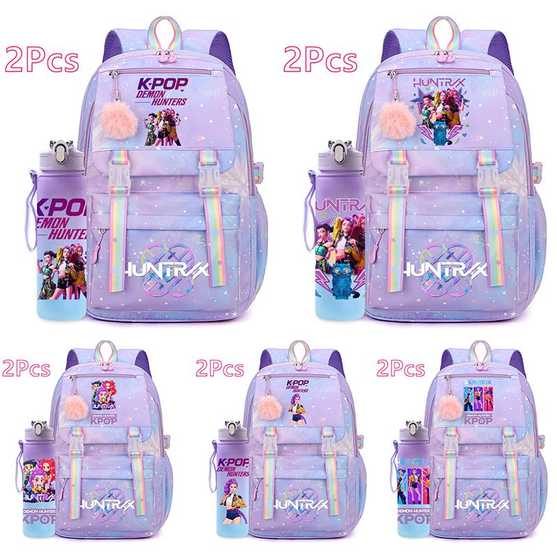 2 шт./набор Милый аниме K-pop рюкзак с принтом 750 мл бутылка для воды большой вместимости дорожная сумка для девочки-подростка мальчика школьный портфель детский подарок рюкзак — купить товар онлайн с бесплатной доставкой по всему миру!