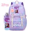 2 шт./набор Милый аниме K-pop рюкзак с принтом 750 мл бутылка для воды большой вместимости дорожная сумка для девочки-подростка мальчика школьный портфель детский подарок рюкзак