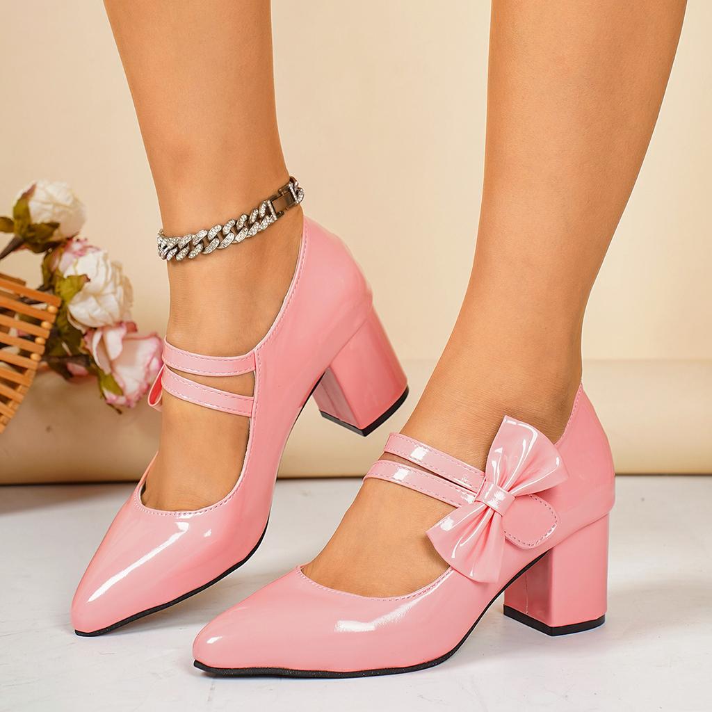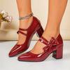 Женские туфли Мэри Джейн из лакированной кожи с бантом и заостренным носом на массивном каблуке Модная обувь для вечеринок