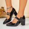 Женские туфли Мэри Джейн из лакированной кожи с бантом и заостренным носом на массивном каблуке Модная обувь для вечеринок — купить товар онлайн с бесплатной доставкой по всему миру!