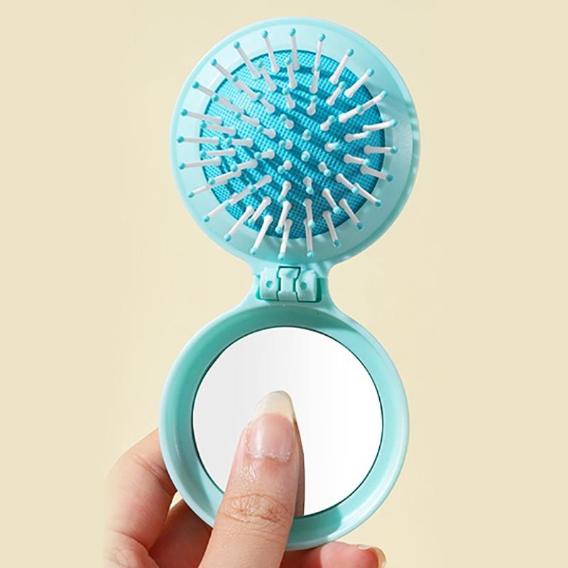Карманное зеркало Складная расческа, Антистатическая Портативная Круглая Карманная Подушка Безопасности Массажная Расческа, С Зеркалом В Форме Расчески