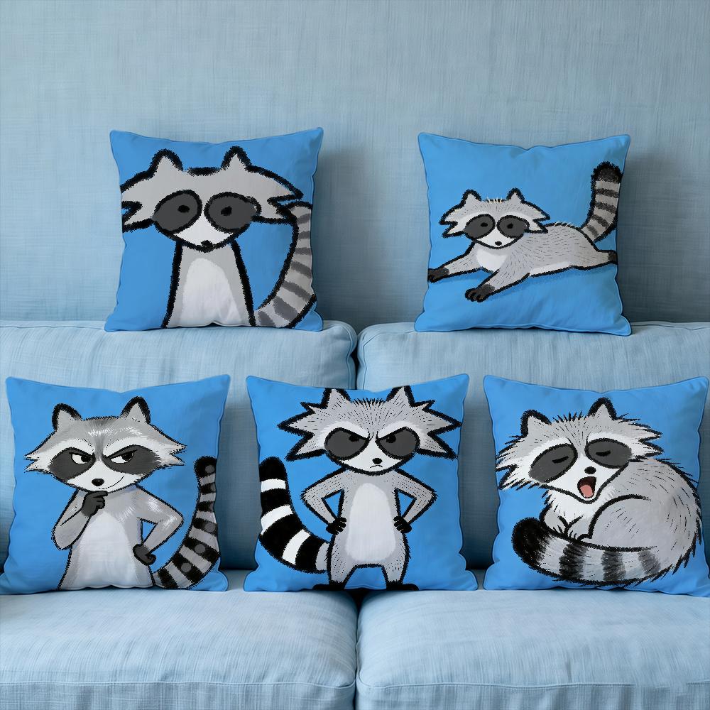 Cushion Cover Soft Case Raccoon Sofa Cartoon Living Room Home Comfortable Office Decor Cute Protective Pillow