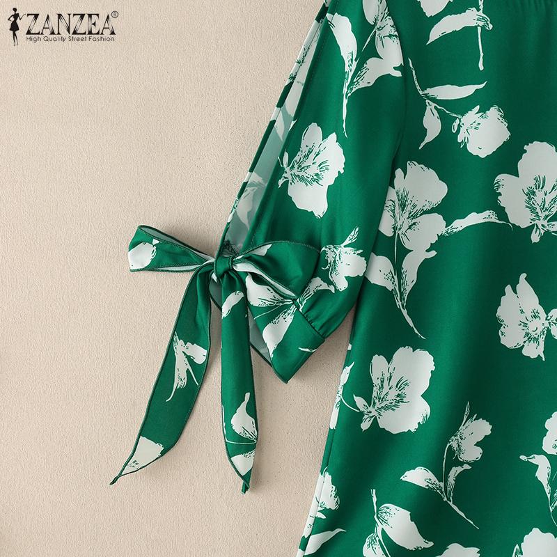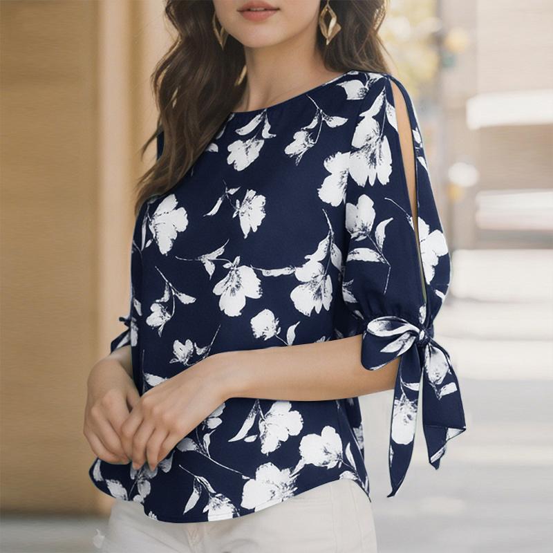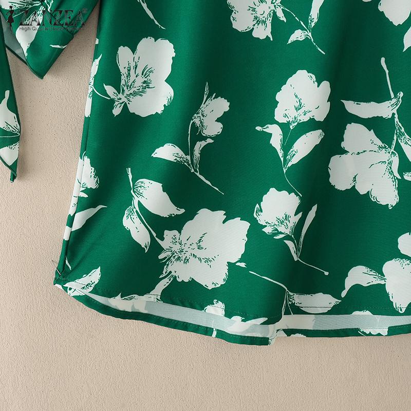 ZANZEA Женская повседневная блузка с круглым вырезом, шнуровкой и короткими рукавами, с принтом.