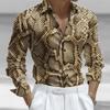 Модная мужская рубашка с длинным рукавом Змеиный принт Одежда для улицы Полиэфирное волокно Цифровая печать Лето