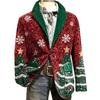 Пиджак Костюм Вельветовая Зимняя Куртка Приталенный Однобортный Пиджак Лацкан Длинный Рукав 3D Принт на Рождественскую Тематику Верхняя Одежда