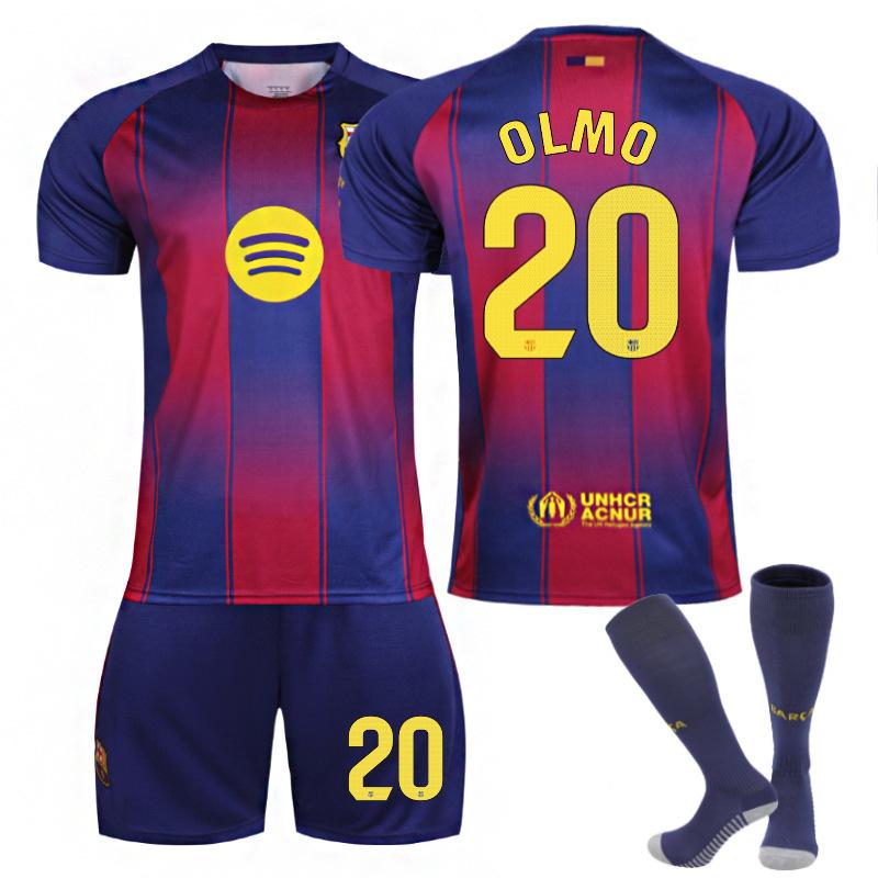 Футбольная форма на заказ для подростков, детей и взрослых, домашний комплект «Барселоны» 25/26 №20, тренировочная футбольная форма OLMO, футбольная форма с носками.