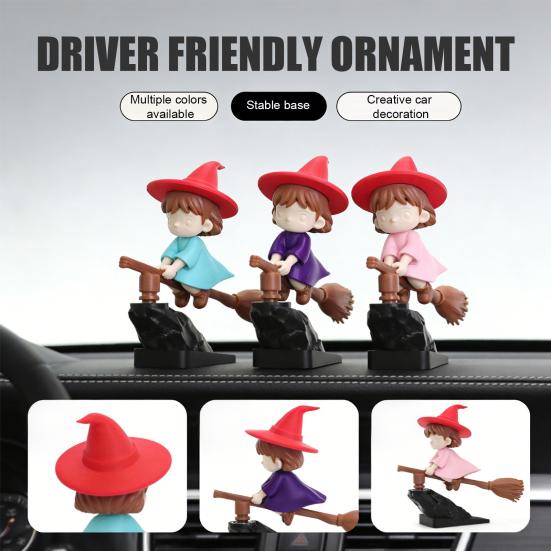 Wizard Broomstick Drift Ornament Fun Motion Activated Dynamic Flying Car Dashboard Decor Fantasy Gifts for Enthusiasts Vehicle Interior Decor