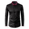 Эта мужская рубашка изготовлена из высококачественного полиэфирного волокна с добавлением 5% спандекса, что обеспечивает устойчивость к сминанию и легкую эластичность для комфорта в течение всего дня без стеснения.. Обладая классическим дизайном с лацканами и пуговицами, он сочетает в себе простоту и элегантность.. Контрастный цветной воротник украшен двумя стразами, добавляя утонченности сдержанному стилю..
