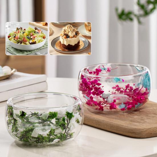Уникальный дизайн украшен красивыми натуральными сухоцветами, добавляющими художественный и декоративный штрих вашей посуде.. Идеальная для подачи супов, горячих блюд, десертов или фруктов, эта чаша с двойными стенками поддерживает температуру, улучшая при этом презентацию..