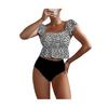 2 шт./комплект Женский купальник Комплект Квадратный вырез Воланы Короткий рукав Полосатый принт Топы Высокая талия Плавки Комплект купальных костюмов