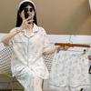 Весенне-летний простой стиль Ледяной шелк Трех peças Комплект Пижама с коротким рукавом Женский Набор для отдыха с принтом кролика