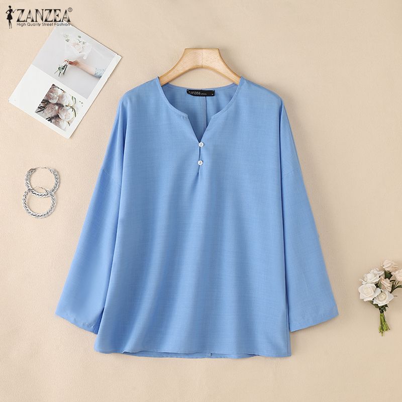 ZANZEA Женская повседневная однотонная блузка с v-образным вырезом и рукавами 3/4 — купить товар онлайн с бесплатной доставкой по всему миру!