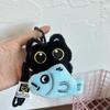 Милый плюшевый подвеска-черный кот с большими глазами и маленькой рыбкой, Креативный аксессуар для сумки для пары, Брелок маленький черный кот