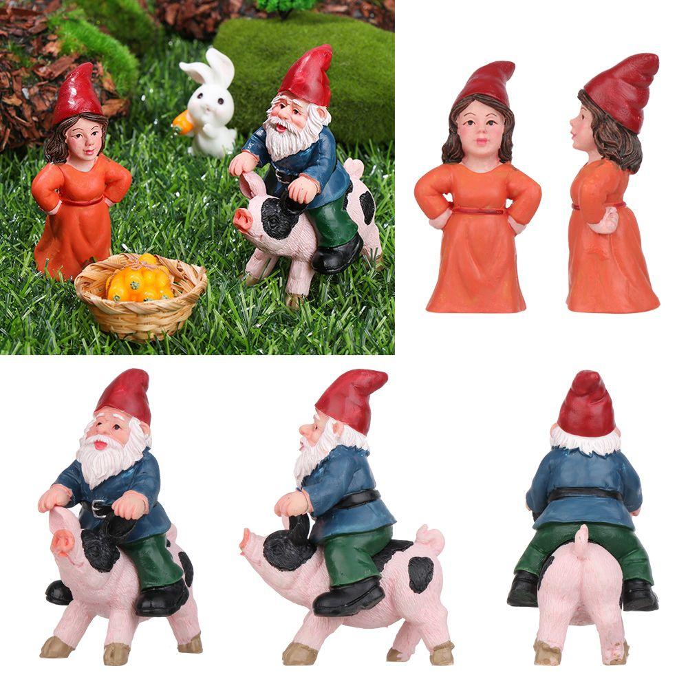 Naughty Miniature Dwarf Figurine Riding Pig Gnome Female Goblin Statue Fairy Garden Decorations Micro Landscape Handicraft Gift