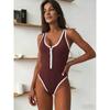 Модный сплошной купальник на молнии с высокой талией для женщин