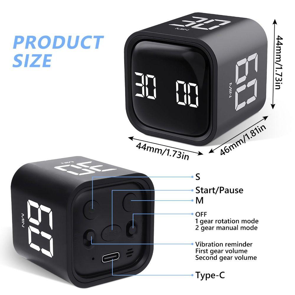 Rotation Timing Pomodoro Timer 5/10/30/60min Alarm Clock New Digital Cube Timer for Kids Studying